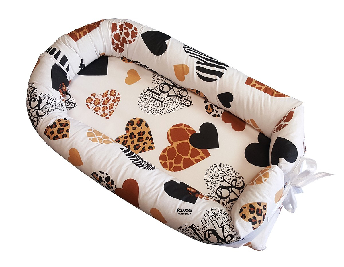 Кокон-позіціонер для новонароджених зі знімним чохлом і матрацом + подушка Сердечка Kuzya Production